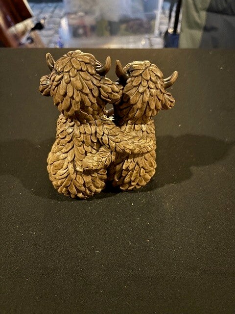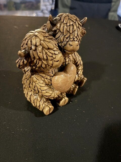 Hughie the Highland cow True Love resin ornament, the perfect addition to any home decor.