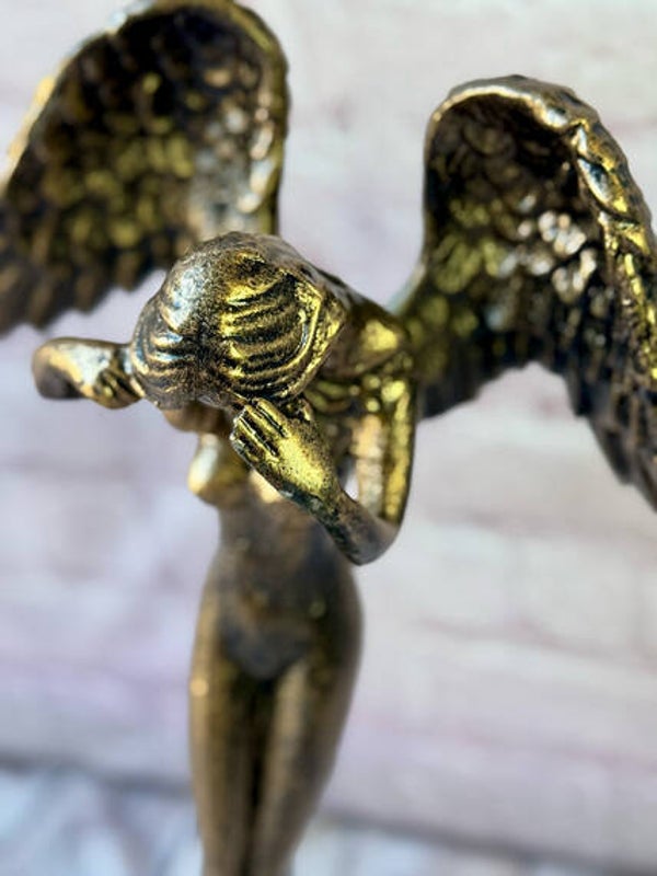 Add a touch of celestial grace and artistic beauty to your home with this exquisite cast iron angel statue.