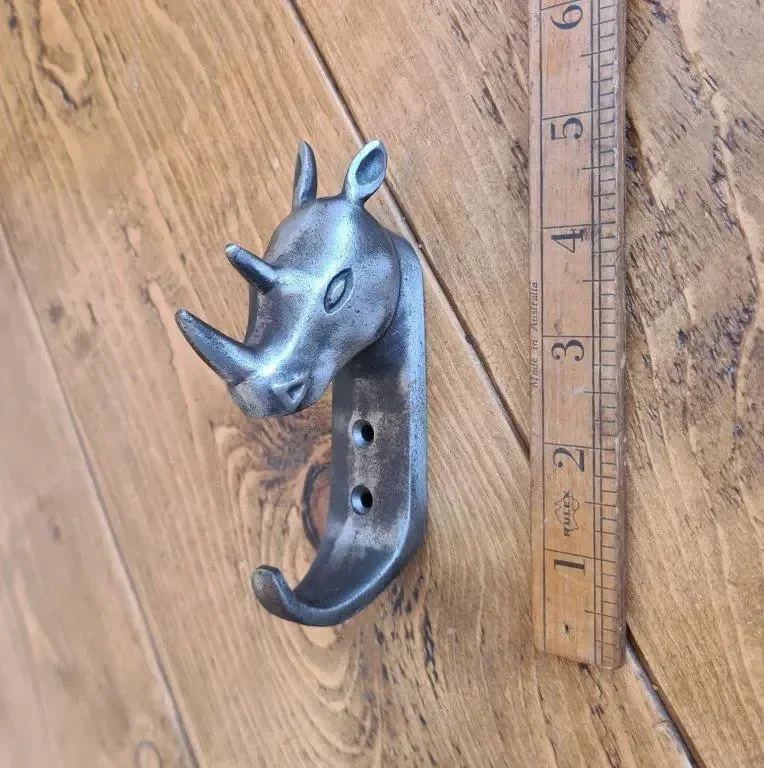 Charge headfirst into bold decor with the Single Rhinoceros Coat Hook, crafted in rugged cast antique iron and measuring 125mm. With its horn-forward design and sturdy construction, this hook holds strong and brings the mighty presence of the savannah into your hallway or bathroom.