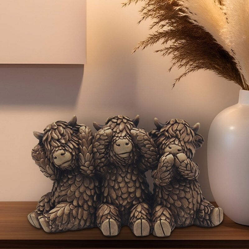 Meet the charming Hughie Hear No Speak No See No Highland Cows, a delightful piece that adds character to any home decor. Capture the beauty of these majestic creatures and infuse your space with a touch of the Scottish Highlands. Perfect for collectors or anyone who loves cute and cuddly accents, this figurine is a must-have addition to your collection